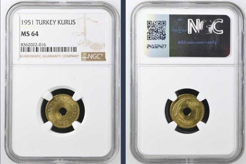 1951 1 kuruş, NGC MS 64 delikli çil -Nadir, 12 gün önce satışa sunulmuştur.