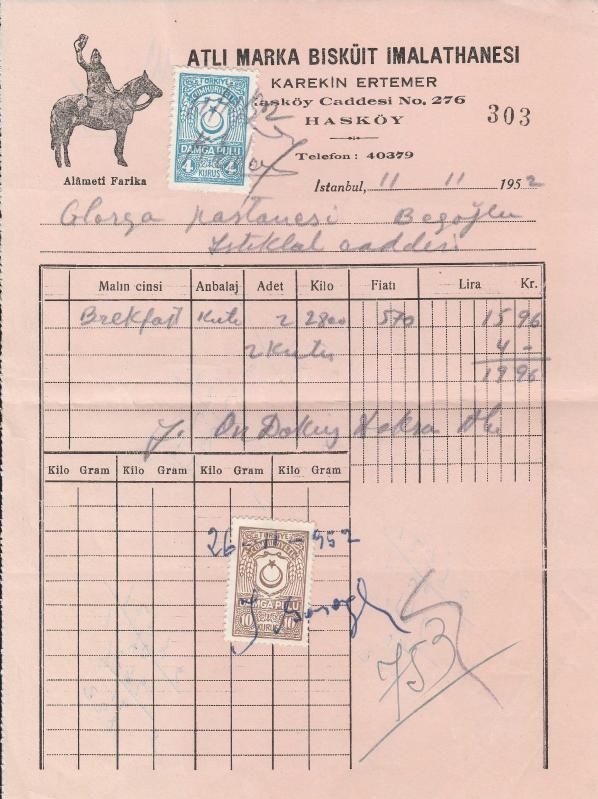 1952 ATLI MARKA BİSKÜİT İMALATHANESİ DAMGA PULLU FATURA, bir ay önce satışa sunulmuştur.