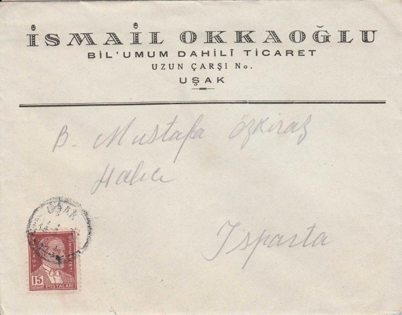 1952 UŞAK FINDIK DAMGALI VE FİRMA ANTETLİ ISPARTA'YA GÖNDERİLMİŞ ATA TEK PULLU ZARF. (İÇİNDE OSMANLICA MEKTUBU İLE BİRLİKTE), dün satışa sunulmuştur.