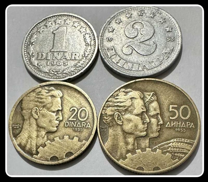 1953-1955-1955-1965 Yılları 1-2-20-50 DİNAR /Yugoslavya Sosyalist Cumhuriyeti Parası (YBMY4) 4’lü LOT KM#31- 1953-2 Dinar KM#34- 1955-20 Dinar KM#35- 1955-50 Dinar /KM#47-1965-1 Dinar
