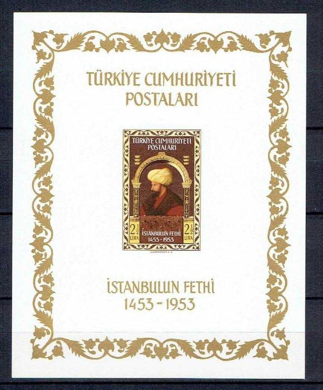1953 İSTANBUL'UN FETHİNİN 500.YILDÖNÜMÜ FATİH SULTAN MEHMET MNH BLOK. BLOK PULUN ARKA YÜZ FOTOĞRAFI DA EKLENMİŞTİR.