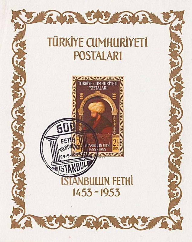 1953 İstanbul'un Fethi'nin 500.Yıldönümü Hatıra Blok Pul -Nadir İlk Gün Damgalı Pul, 4 ay önce satışa sunulmuştur.