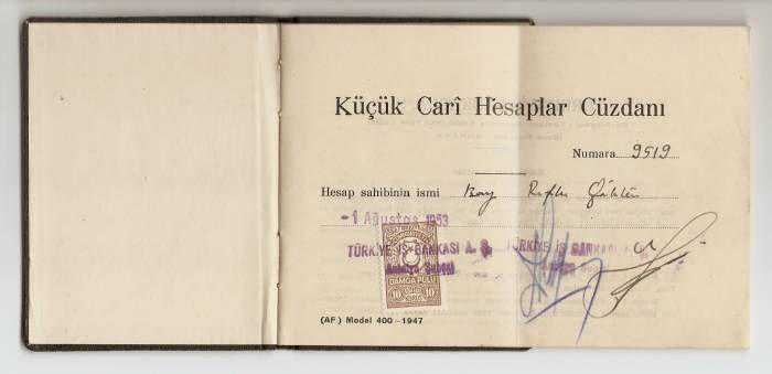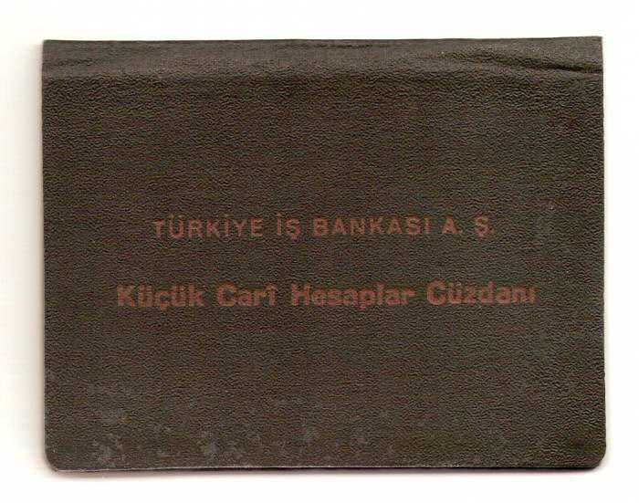 ** KÜÇÜK CARİ HESAPLAR CÜZDANI ** Kalın kapaklı,kapalı hali 12 x 9 cm.ebadında olan, Türkiye İş Bankası Antalya Şubesi'ne ait, 1 Ağustos 1953 tarihli, küçük cari hesaplar cüzdanıdır...