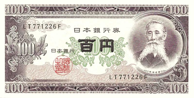 Yabancı Kağıt Para 1953 Yılı Japonya 100 Yen Çil Kondüsyon 1953 yılında tedavüle çıkarılan 100 Japon Yeni tutarındaki banknottur. Bu kağıt para, Japonya'nın İkinci Dünya Savaşı sonrası yeniden yapılanma döneminin sembollerinden biri olarak kabul edilir. Banknotun öne çıkan özellikleri şunlardır: Portre: Ön yüzünde, Japon demokrasisinin öncülerinden biri olarak kabul edilen devlet adamı Taisuke Itagaki'nin (1837–1919) portresi yer almaktadır. Tasarım: Arka yüzünde Tokyo'daki Japon Parlamento Binası'nın (Diet Building) tasviri bulunur ve Paulownia filigranı ile detaylandırılmıştır.