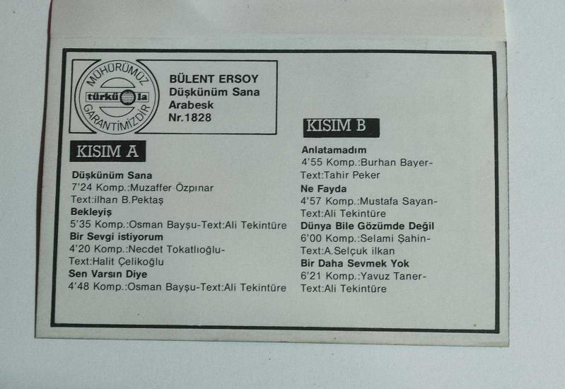 19545-BÜLENT ERSOY**DÜŞKÜNÜM SANA**TÜRKÜOLA KASET