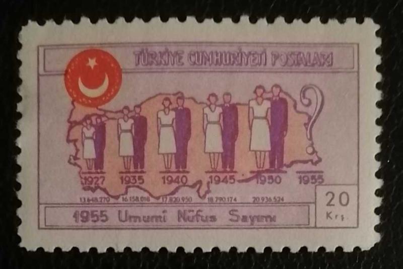 1955 Umumi Nüfus Sayımı Pulu Piyasa Değeri: Damgasız ve temiz kondisyonda (görseldeki gibi diri duran bir pulun) değeri yaklaşık 35 TL - 65 TL arasındadır.