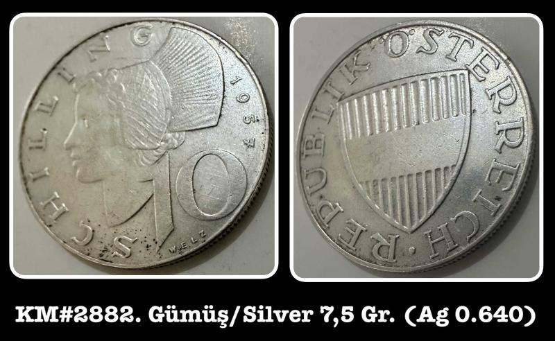 1957- 10 Schilling (Şilin) Avusturya/ Gümüş (Ag 640 - 7,5 Gr.) KM#2882 (YBMA57), 1 yıl önce satışa sunulmuştur.