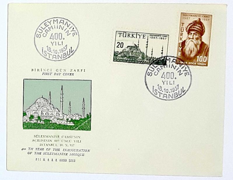 1957 FDC Süleymaniye Camiinin Açılışının 400. Yıldönümü, İstanbul, 18.10.1957, PTT M.O.B.Y.D. İlk Gün Zarfı (FDC-54), en son 2 ay önce güncellenmiştir.