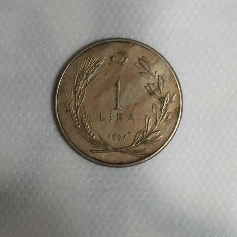 Ülke Türkiye Periyod Türkiye Cumhuriyeti (1934 - 1980) Para Birimi Türk lirası Para tipleri Tedavül madeni paralar Değeri 1 Lira Yıl 1957 Kenar Yivli Şekli Yuvarlak Hizalama Madeni para hizalaması (180°) Malzeme detayları Bakır-nikel alaşımı Ağırlık (g) 7,5 Çap (mm) 27 Kalınlık (mm) 1,8