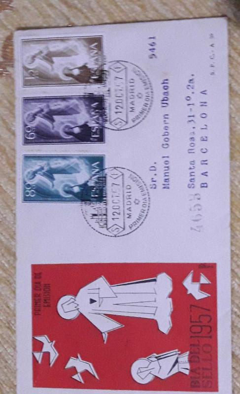 1957 İSPANYA POSTADAN GEÇMİŞ ÖZEL DAMGALI FDC