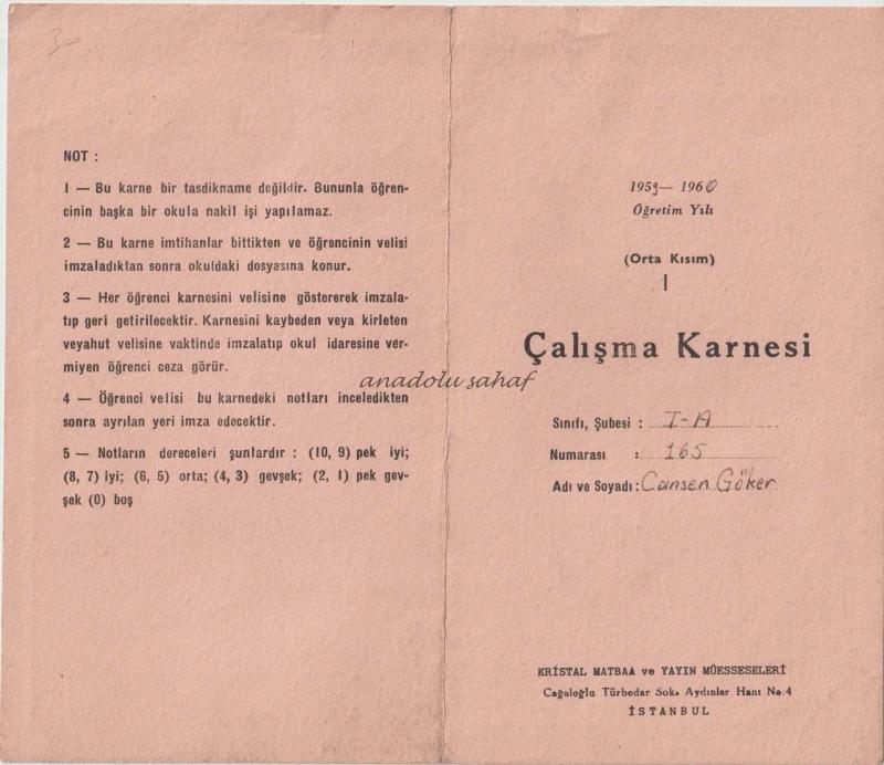 1959 - 1960 Öğretim Yılı Orta Kısım I Çalışma Karnesi [Eğitim Tarihi], en son 1 yıl önce güncellenmiştir.