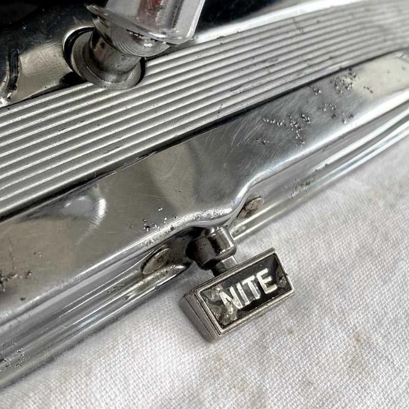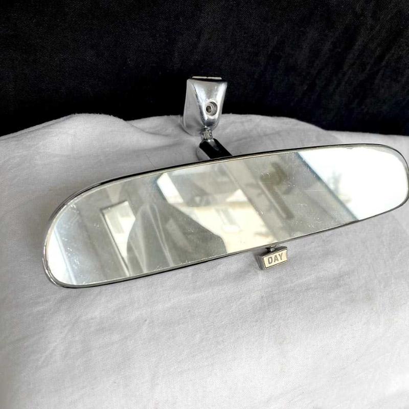 Klasik oto aksesuar koleksiyoncuları için harika bir parça. Chevrolet'nin Scout II, Travelall, Travelette, Pickup ve Metro gibi modelleri için üretilmiş klasik Amerikan oto aksesuarıdır. 1960'ların üretimi "DAY/NITE" ayarlı dikiz aynası, dönemin otomotiv tasarımını yansıtan ikonik bir aksesuar. Ayna, parlak krom kaplama metal kasası ve karakteristik çizgili detayları ile her aracın içine otantik bir dokunuş katacak nadir bir aksesuardır. Dönemin seçkin otomobillerinde yaygın olarak bulunan DAY/NITE ya da Gece/Gündüz mandalı, aynanın açısını değiştirerek gece sürüşlerinde arkadan gelen araçların farlarının kamaşmasını azaltmak için kullanılır. Ayna yaşına göre iyi durumdadır, krom yüzeyinde ve camın kenarlarında biraz aşınma dışında çatlak veya eksik parça yoktur. 25x7 cm 400 gr