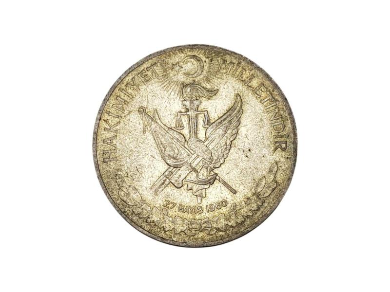 27 MAYIS 1960 DARBESİ 10 LİRA GÜMÜŞ HATIRA PARA. ÇAP: 3,4 CM. AĞIRLIK: 15,06 GR