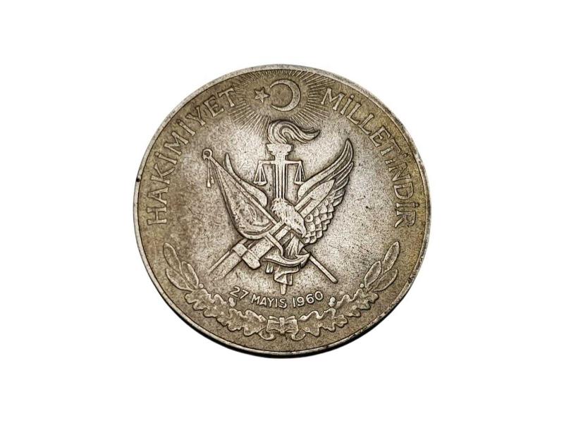 27 MAYIS 1960 DARBESİ 10 LİRA GÜMÜŞ HATIRA PARA. ÇAP: 3,4 CM. AĞIRLIK: 15,13 GR