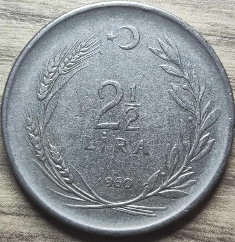 1960 Tedavül 2.5 Lira 2 Buçuk Lira İki Buçuk Lira Fotoğraftaki ürün gönderilecektir. Fatura kesilmeyecektir.