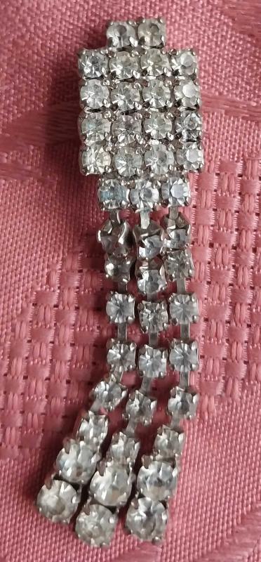 Vintage klipsli küpe Dönem: 1960’lar – Mid-Century Costume Jewelry Malzeme: Parlak rhinestone (pres cam taş) + ağır metal gövde Kapanış: Döneme özgü clip-on mekanizma (kulak delmeden kullanılır) Durum: Çok iyi – taş kaybı yok, mekanizma sağlam Aile yadigârı, gerçek 1960’lar dönemine ait orijinal bir vintage gece küpesidir. Parlak rhinestone taşların üç sıralı sallantılı tasarımı, o yılların klasik “evening jewelry” stilinin en karakteristik örneklerinden biridir. Bugün aynı kaliteyi bulmak neredeyse mümkün değil. Taş yuvaları, metal işçiliği, ağırlığı ve klips mekanizması tamamen dönem üretimi olduğunu gösteriyor. Hem koleksiyonluk hem de özel günlerde kullanılabilecek çok zarif bir parça. Öne çıkan özellikler: 1960’lar orijinal vintage tasarım Parlaklık seviyesi yüksek rhinestone cam taşlar Üç sıralı şık sallantılı form Orijinal clip-on mekanizma (piercing gerektirmez) Eksiksiz taş dizilimi – sağlam zincirler Gece elbisesi, sahne, davet için ideal Koleksiyoncular için değerli bir parça. 6-7 cm. Durum: Yaşına göre çok iyi durumda. Taş kaybı yok, klipsler sorunsuz çalışıyor.