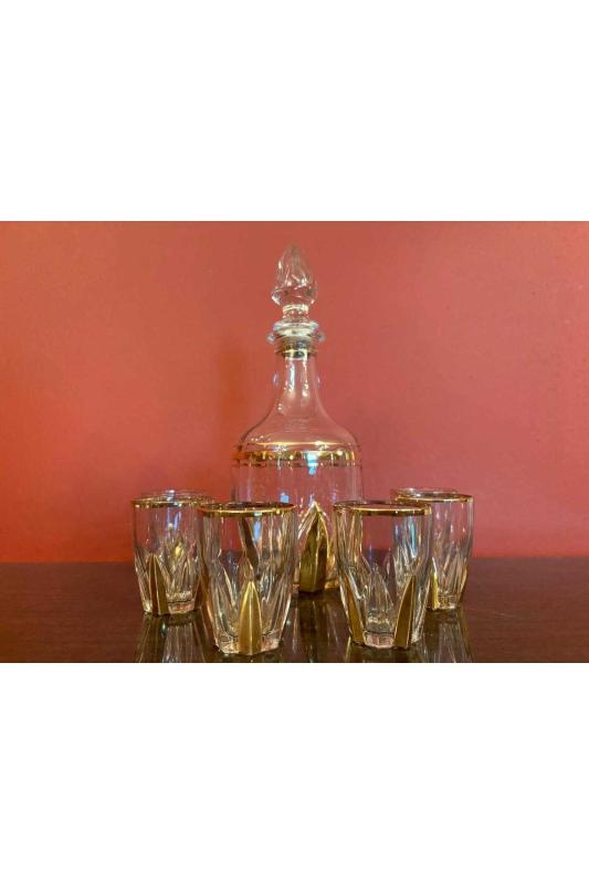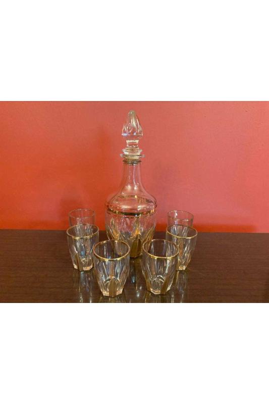 1960' s Fransız altın yaldızlı likör takımı karaf 22 cm kadehler 5,5 cm boyunda, 15 gün önce kitantik’te satışa sunulmuştur.
