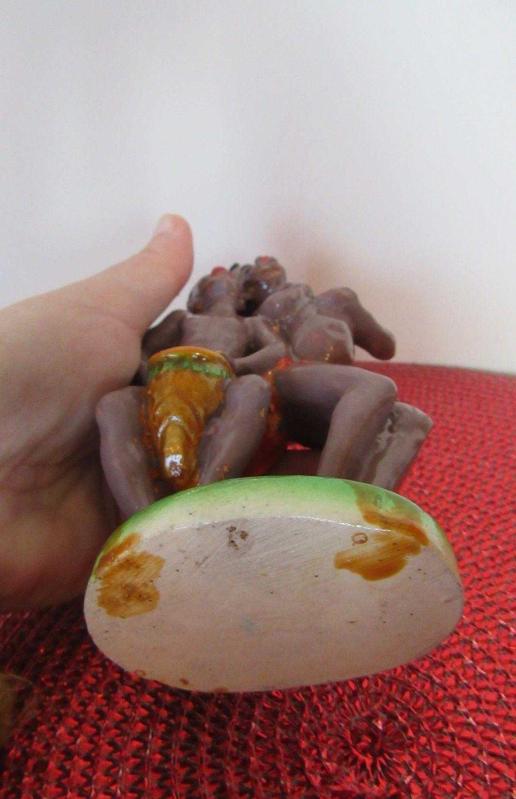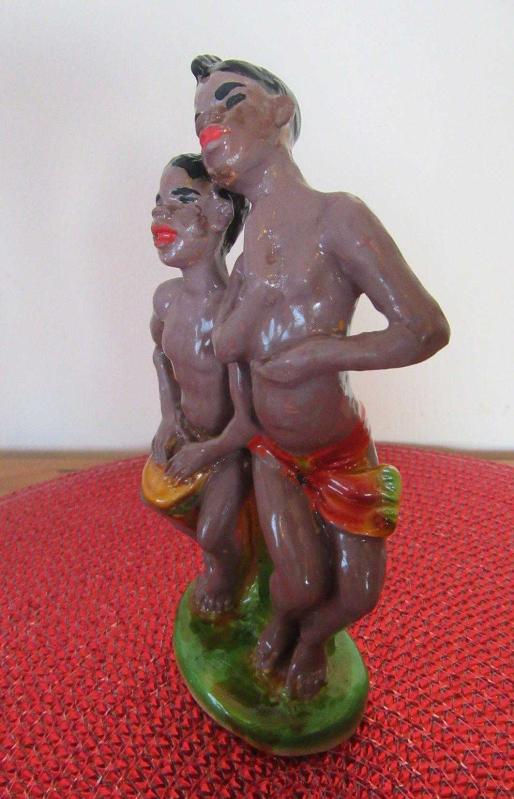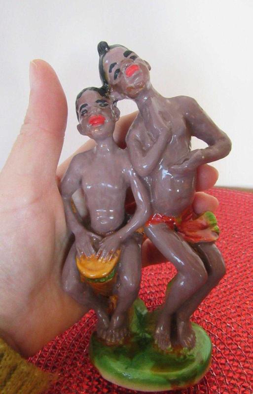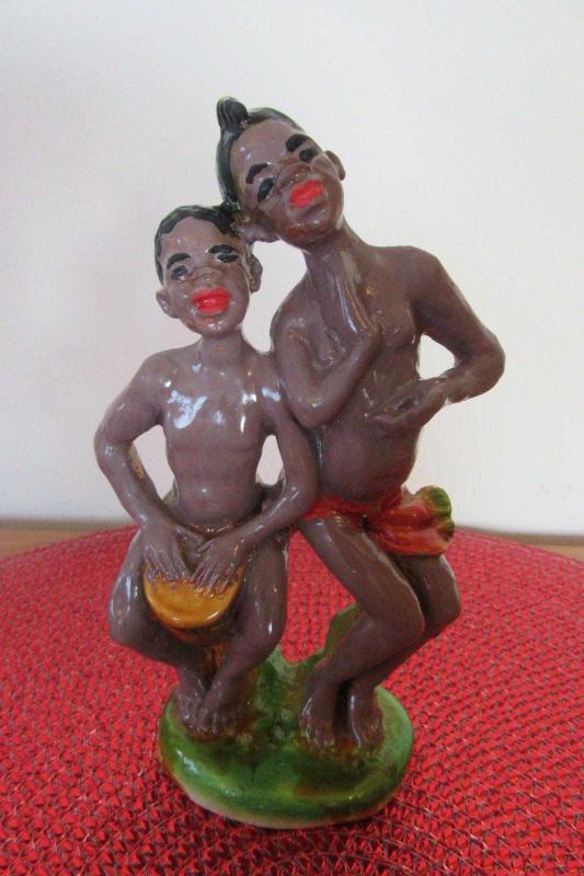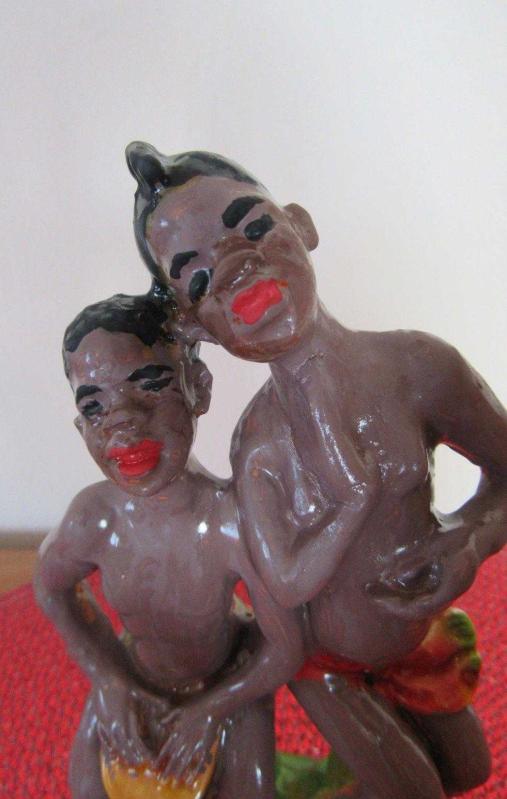 1960'LARDAN VİNTAGE ALÇI CHALKWARE BİBLO AFRİKALI GENÇLER DJEMBE ÇALAN 15.5 CM başlıklı antika/koleksiyon objesinin menşei belirtilmemiştir. 1940 sonrası dönemine aittir.