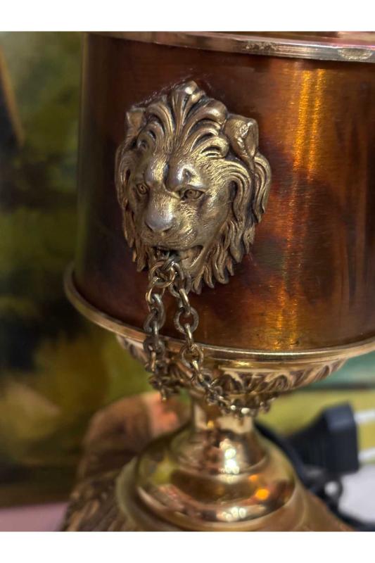 1960's fransız 52 cm boyunda bronz dan aslan figürlü ve ayaklı gaz lambası formunda abajur, 6 ay önce kitantik’te satışa sunulmuştur.