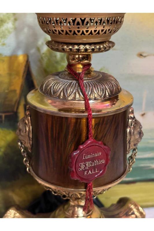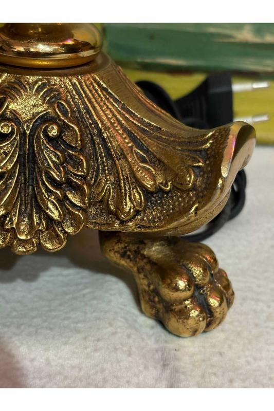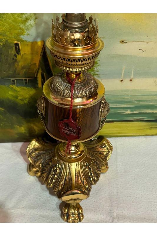 1960's fransız 52 cm boyunda bronz dan aslan figürlü ve ayaklı gaz lambası formunda abajur başlıklı antika/koleksiyon objesinin menşei belirtilmemiştir. Objenin ait olduğu dönem bilinmeketedir.