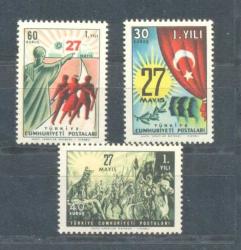 1961 27 MAYIS İNKILABININ 1. YILI DAMGASIZ SERİ.... TÜM ÜRÜNLERİMİZ ALICISINA FATURASI İLE GÖNDERİLECEKTİR....