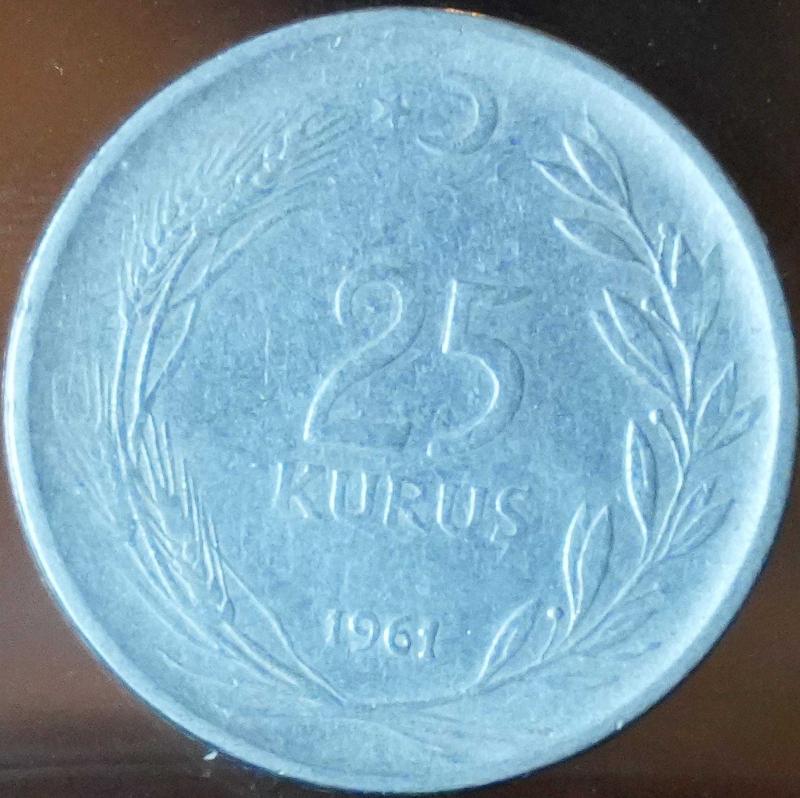 1961 Tedavül 25 Kuruş Yirmi Beş Kuruş Yirmibeş Kuruş Türk Lirası Fotoğraftaki ürün gönderilecektir. Fatura kesilmeyecektir.