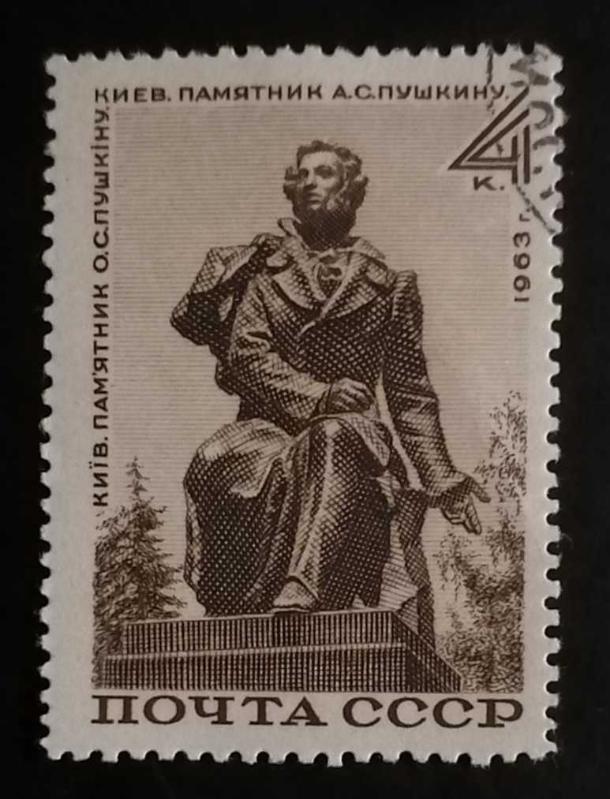 Görseldeki yeni pul, Sovyet edebiyatının babası kabul edilen Aleksandr Puşkin'in Kiev'deki anıtını tasvir etmektedir.