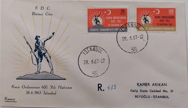 1963 TÜRK KARA ORDUSUNUN 600.YILI TAAHHÜTLÜ KAMER YAPIMI FDC İLK GÜN ZARFI 2024 KATALOK DEĞERİ;8.000.00TL RR2AA1 PEK BULUNMAZ, 4 yıl önce satışa sunulmuştur.