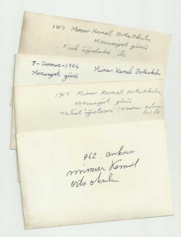 ** 1964 ANKARA ÇANKAYA MİMAR KEMAL ORTAOKULU MEZUNİYET FOTOĞRAFLARI ** 14 x 9 cm.ebadında,hepsi çok temiz durumda,arkaları görüldüğü gibi yazılı, toplam 4 adet,1964 senesindeki mezuniyet gününden özel fotoğraflar...