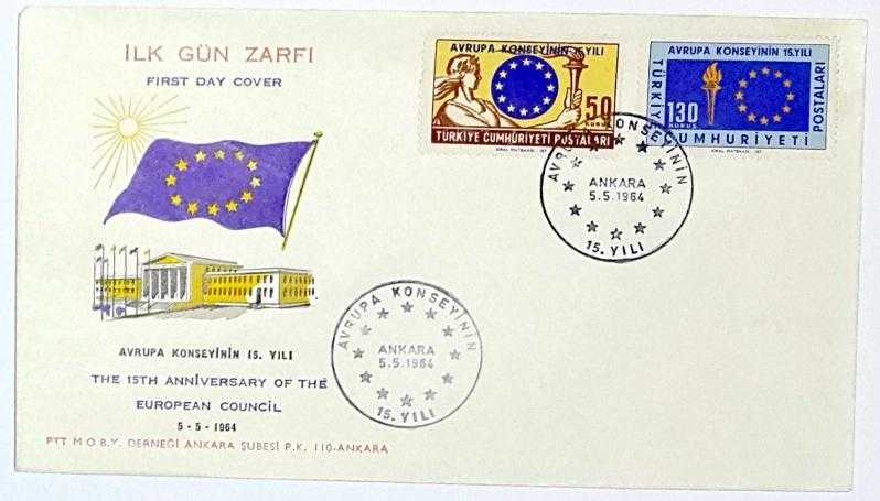 1964 FDC AVRUPA KONSEYİNİN 15 İNCİ YILI (PTT), bir ay önce satışa sunulmuştur.