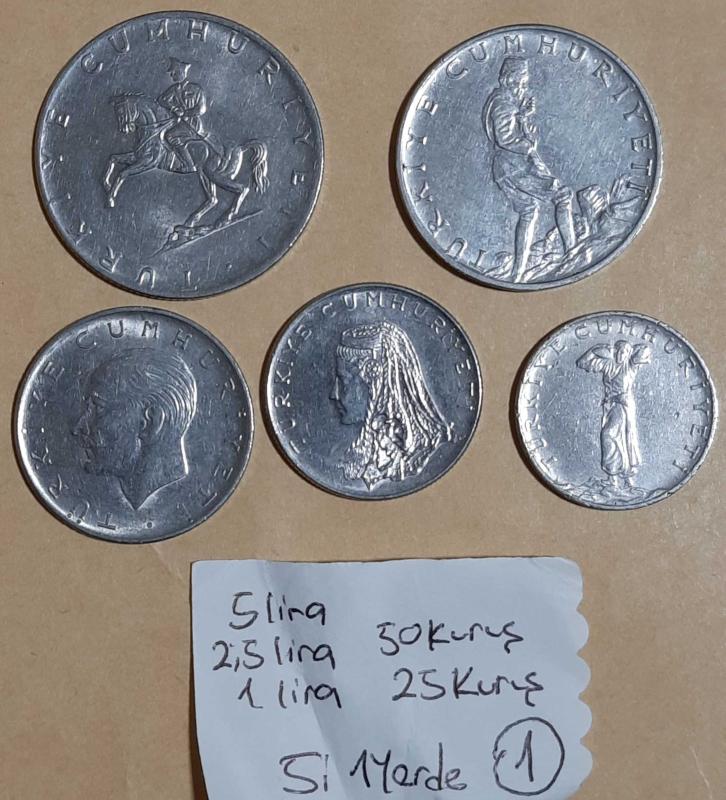 1965 - 1977 yılları Akmonital Paralar Tam Set 5 Lira - 2,5 lira - 1 Lira - 50 ve 25 Kuruş - 5i bir Yerde Lot 1 Para Koleksiyonu, 17 gün önce satışa sunulmuştur.