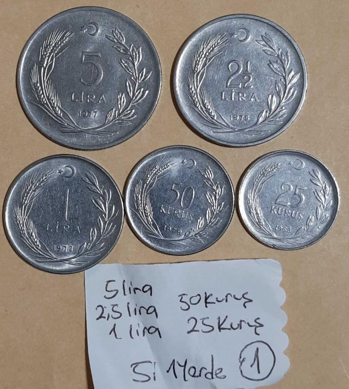 1965 - 1977 yılları Akmonital Paralar Tam Set 5 Lira - 2,5 lira - 1 Lira - 50 ve 25 Kuruş - 5i bir Yerde Lot 1 Para Koleksiyonu, 17 gün önce satışa sunulmuştur.