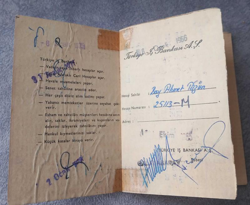 1965 TARİHLİ TÜRKİYE İŞ BANKASI HESAP CÜZDANI. FOTOĞRAFTA GÖRÜLDÜĞÜ GİBİDİR KOLEKSİYONLUK NADİR, dün satışa sunulmuştur.