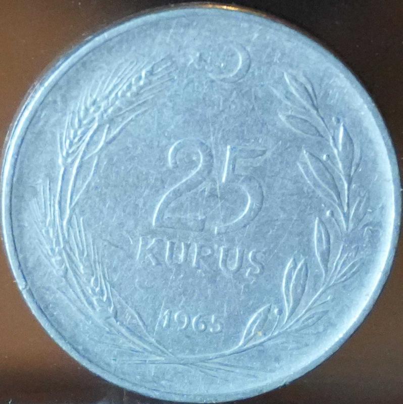 1965 Tedavül 25 Kuruş Yirmi Beş Kuruş Yirmibeş Kuruş Türk Lirası Fotoğraftaki ürün gönderilecektir. Fatura kesilmeyecektir.