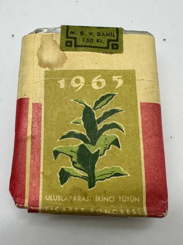 1965 Uluslararası 2.Tütün Ticaret Kongresi sigara pakedi dolu açılmamış kolleksiyonluk ÇT Nadir başlıklı antika/koleksiyon objesi Türkiye menşe’lidir. 1960-1979 arası dönemine aittir.