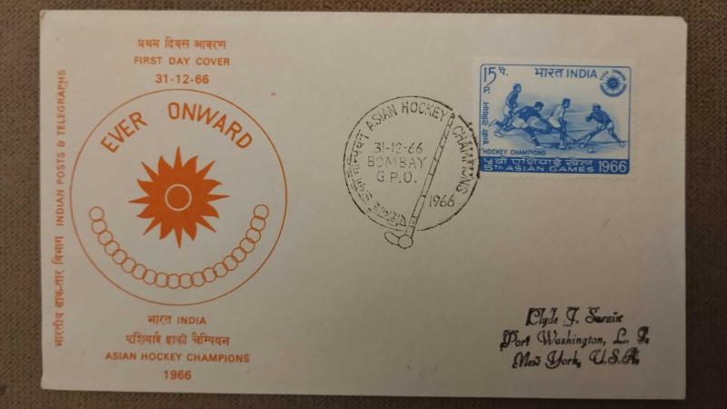 1966 YILI HİNDİSTAN ASYA HOKEY ŞAMPİYONASI İLK GÜN ZARFI KULLANILMAMIŞ