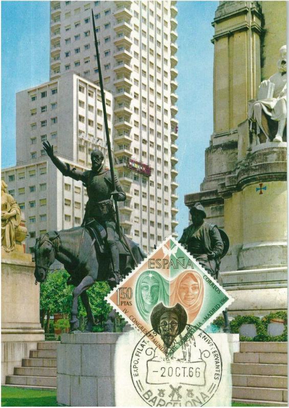 1966 Yılı İspanya Yazar Cervantes Don Quijote Temalı Özel Damgalı Maksimum Kart 10,30*15,00 cm ebatındadır.