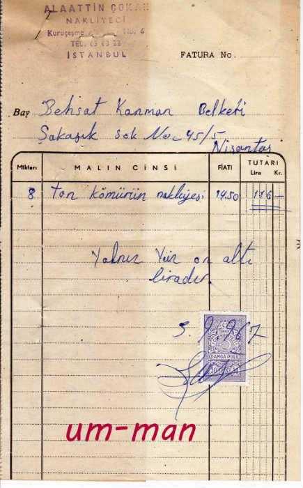 1967 ALAATTİN ÇOKAH NAKLİYE FATURASI, en son 1 yıl önce güncellenmiştir.