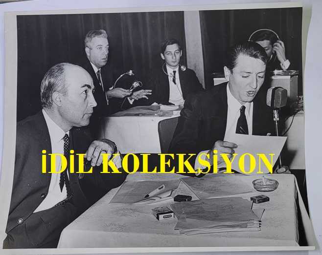 1967 HÜRRİYET ALTIN MİKROFON YARIŞMASI ORİJİNAL BÜYÜK BOY FOTOĞRAFI - 22 x 18 cm EBADINDA - 1967 HÜRRİYET ALTIN MİKROFON YARIŞMASI, MASASINDA YERİNİ ALMIŞ OLAN GAZETECİ KEMAL BİSALMAN ve ADNAN TAHİR GÜNTAN AYNI KAREDEYKEN ÇEKİLMİŞ BİR FOTOĞRAF. MASADA FİLTRESİZ BAFRA SİGARASI İLE. 24 ŞUBAT 1967... ÖZEL ARŞİV, en son 3 ay önce güncellenmiştir.