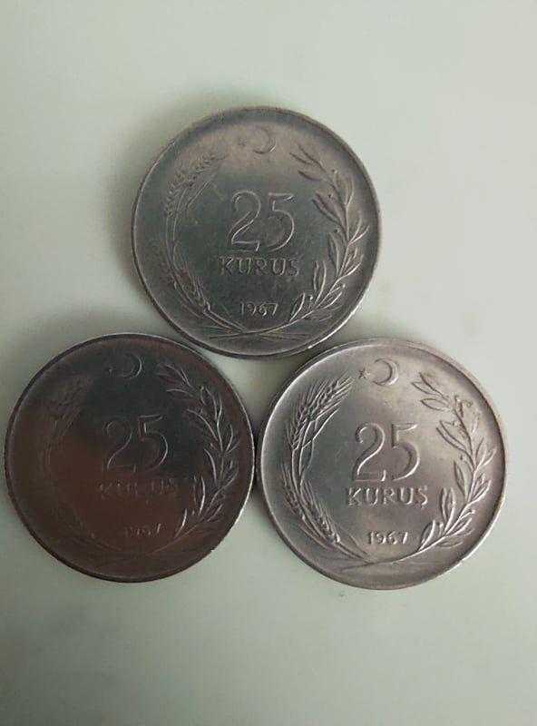 1967 YILINA AİT 25 KURUŞ (3 ADET), 3 yıl önce satışa sunulmuştur.