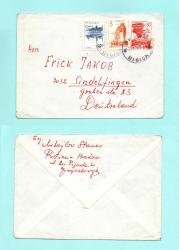 1967 yılında Yugoslavya'dan Almanya'ya Kırmızı kalem ile El Yazılı Karışık Pullu Zarf, 13 gün önce satışa sunulmuştur.