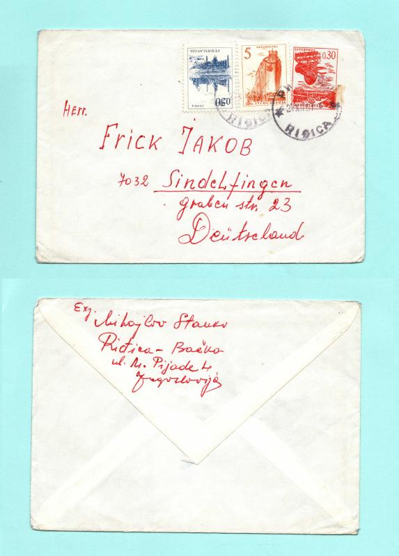Posta tarihi koleksiyonerleri dikkatine, Yugoslavya da belirli bir posta tarifesini karşılamak için çeşitli pulların kullanıldığı, gerçek posta dolaşımı görmüş filatelik zarf üzerinde 1967 yılında Almanya ya postalanmış üç farklı pullu zarf.