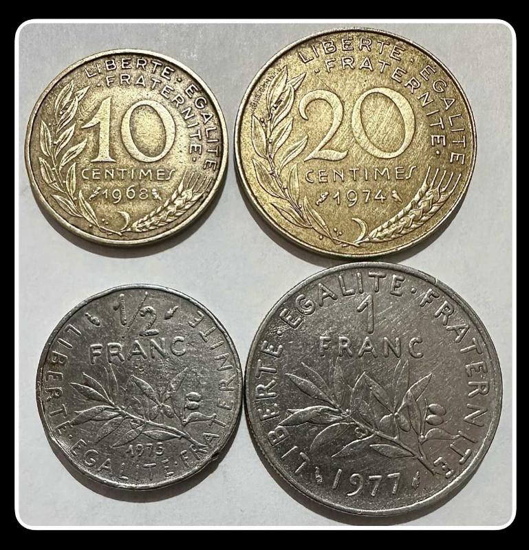 1968 - 10 Centimes 1974 - 20 Centimes 1975 - 1/2 Frank 1977 - 1 Frank FRANSA (YBMF87) 10 Centimes KM#929 20 Centimes KM#930 1/2 Frank KM#931 1 Frank KM#925 Alüminyum/Bronz Nikel