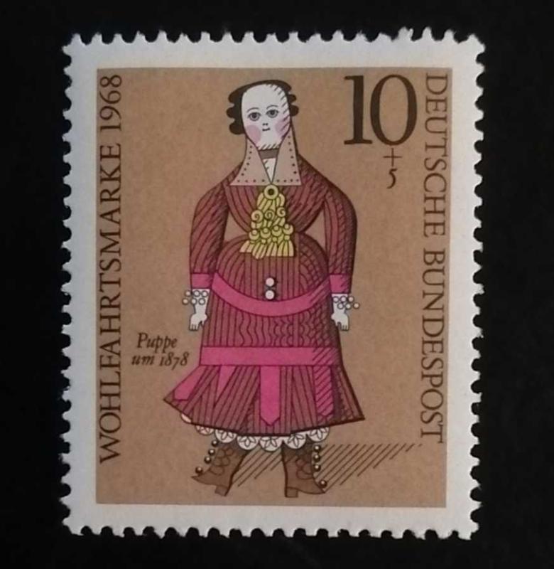 1968 yılına ait, üzerinde 1878 civarında bir bebek figürü bulunan bir Alman refah puludur.