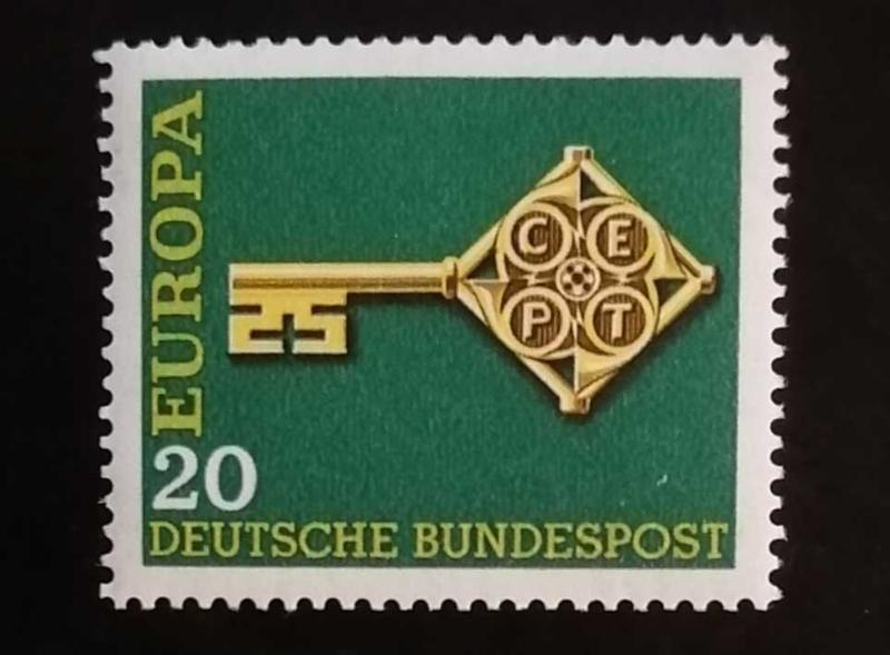 1968 yılında Alman Federal Postası (Deutsche Bundespost) tarafından Avrupa Posta ve Telekomünikasyon İdareleri Konferansı (CEPT) anısına çıkarılan bir Europa puludur. Piyasa Değeri: Damgasız ve arkası orijinal zamklı (MNH) kondisyonda olması durumunda yaklaşık 15 TL - 20 TL arasındadır.