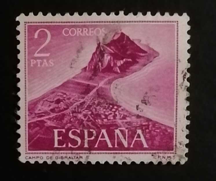 Pulun üzerinde "Campo de Gibraltar" yazıyor. Görselde Cebelitarık Kayası'na (The Rock of Gibraltar) komşu olan La Línea de la Concepción şehri ve kıyı bölgesi betimlenmiştir.