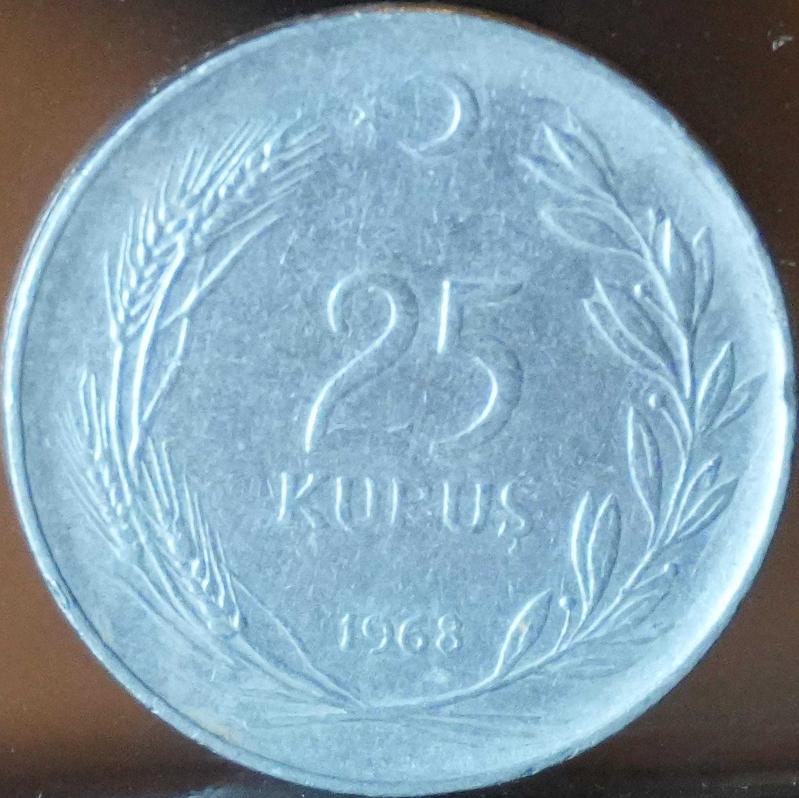 1968 Tedavül 25 Kuruş Yirmi Beş Kuruş Yirmibeş Kuruş Türk Lirası Fotoğraftaki ürün gönderilecektir. Fatura kesilmeyecektir.