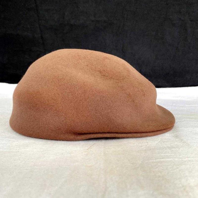 Avusturya şapka üreticisi Hückel'in, 1970'ler üretimi Fatima Extra serisi şık taba rengi kasket. Kasketi Amsterdam'da bir vintage giyim mağazasından almıştım. Kasket %100 yüksek yoğunluklu yün keçe (Wool Felt)'den üretilmiş. Kasketin içinde deri ter bandında "Hückel" logosu ve "STYLED in LONDON" baskısı var. İç etiketinde renk Kodu (378/224 Taba/Karamel), model No (4457, 877), model adı (FATIMA EXTRA), beden (54) yer alıyor. Kasket yaşına göre iyi durumdadır. Herhangi bir yırtık, delik vs yoktur. 54 cm 50 gr
