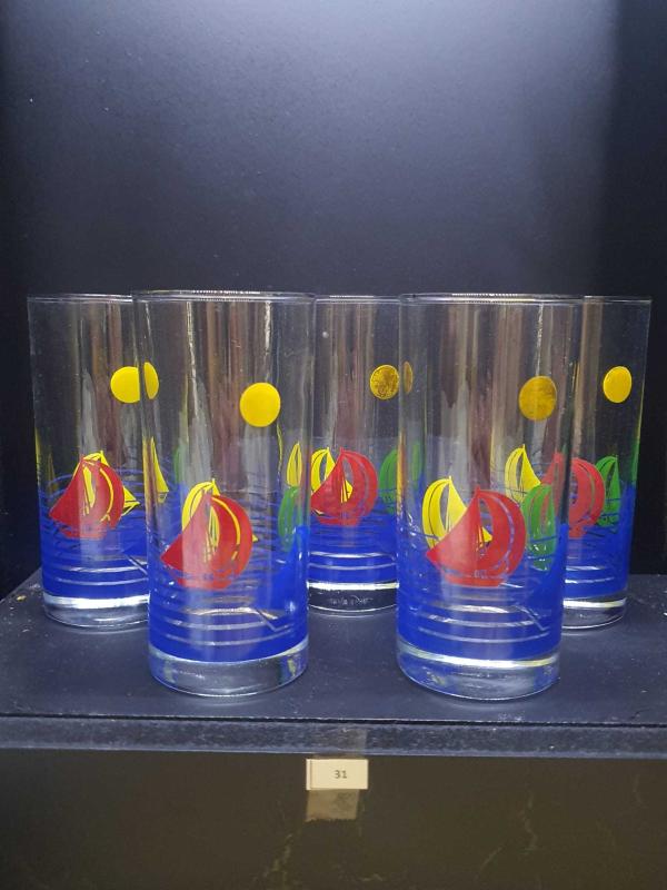 1970 li yıllara ait kokteyl bardağı YELKENLİ RESİMLİ 5 adet