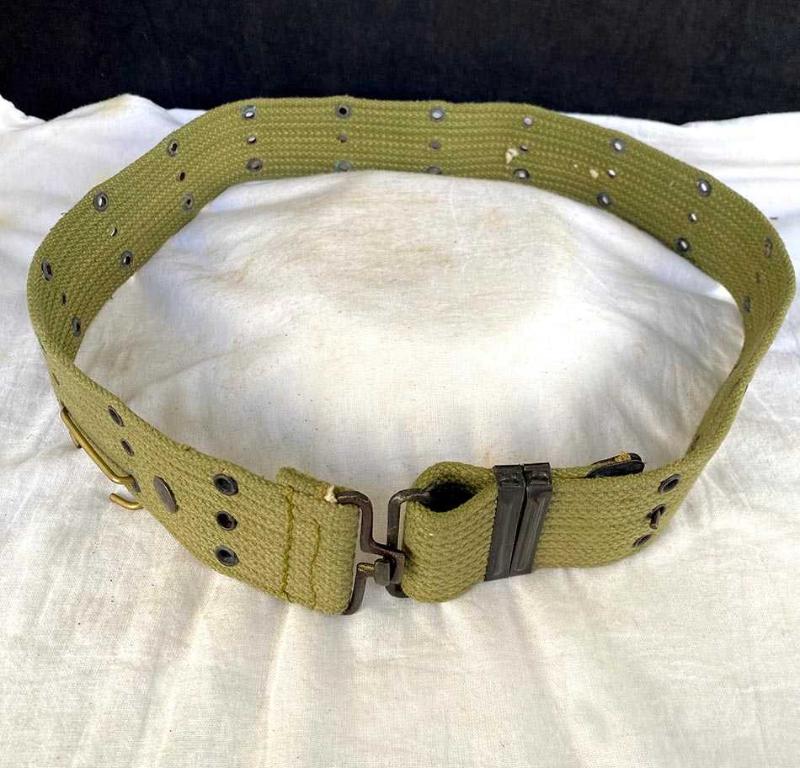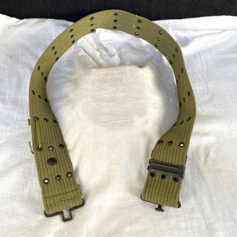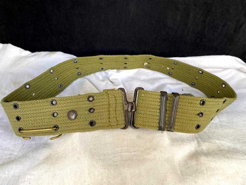 Karakteristik üç sıralı delik yapısıyla TSK tarafından 1960’ların ortasından 1970’lerin sonuna kadar kullanılan orijinal askeri teçhizat kemeri. 1980 sonrası yaygınlaşan sentetik naylon karışımlı kemerlerin aksine, tamamen doğal lifli kanvastan üretilmiştir. Metal aksamları pirinç dökümdür. Tasarım: NATO M1956 standartlarında "pistol belt" formu; dikey üç sıra metal kuşgözü (gromet) dizilimi. Bağlantı: Tipik askeri geçmeli kanca sistemi ve çift taraflı genişlik ayar klipsleri. Kemer yaşına göre çok iyi durumdadır, herhangi bir yırtık, eksik parça vs yoktur. 105 cm 270 gr